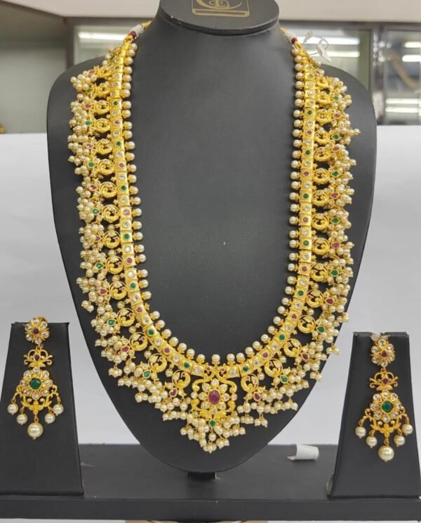 1 gram gold long chain designs with price ruby and emerald stones long haram and long necklace