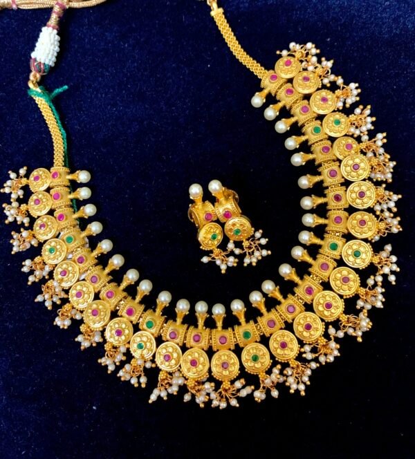 Item Description : Grand one gram gold kasu necklace