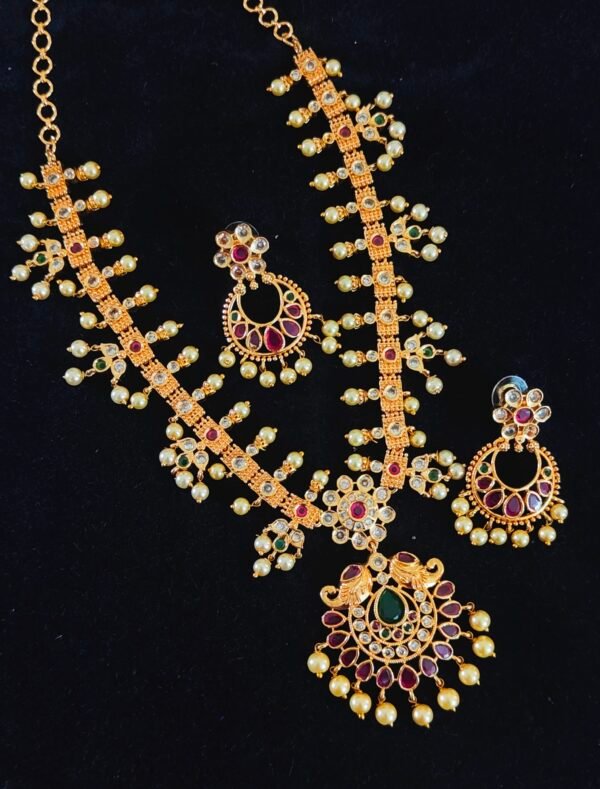 Be the first to review “Guttapusalu necklace designs with chandbali model earrings and guttupusalu”