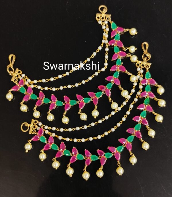 Be the first to review “Imitation cz line ruby emerald lotus ear chain”