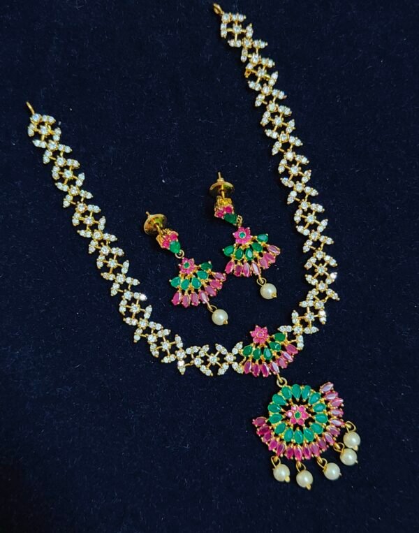 Be the first to review “Imitation cz ruby emerald floral star necklace”