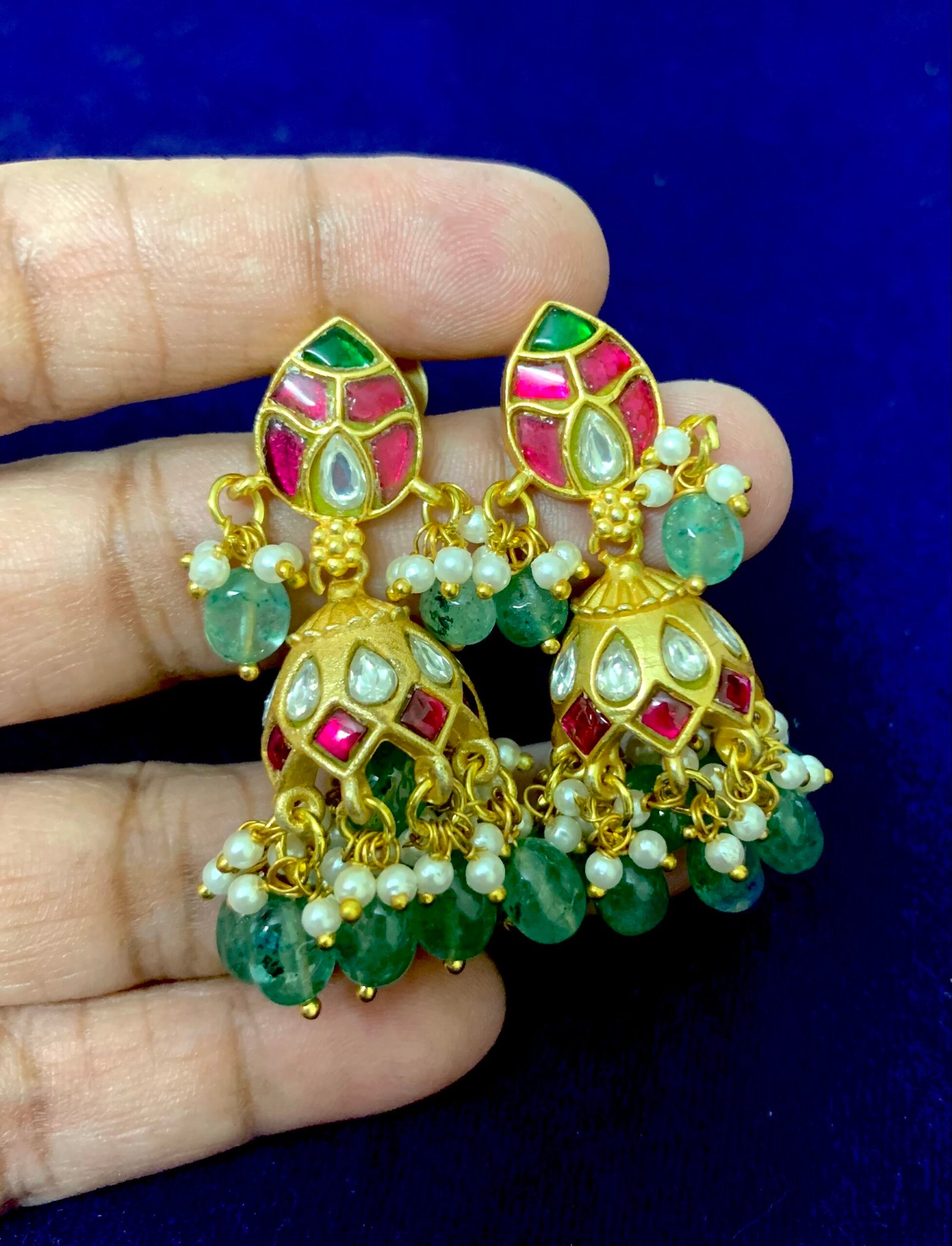 kundan bugadi earrings Multi color stones with mango design