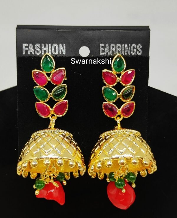 1gram gold earrings multi colour stone jhumkas
