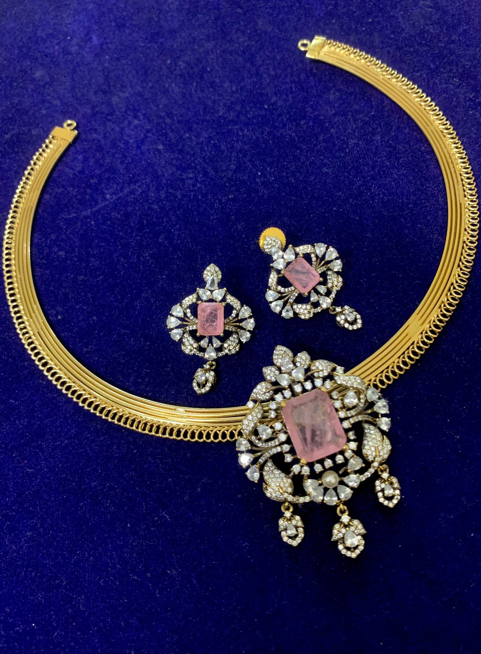 2 in 1 haram and vaddanam uncut stone long necklace waist chain