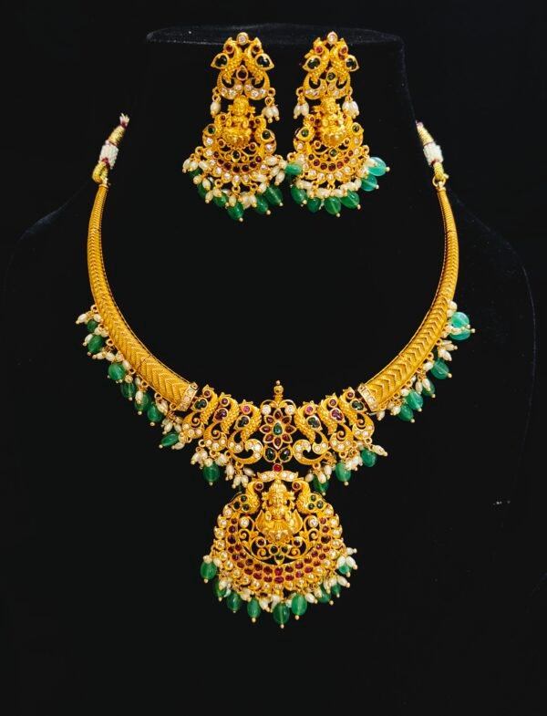 Be the first to review “kante necklace online peacock with Lakshmi devi pendant set”
