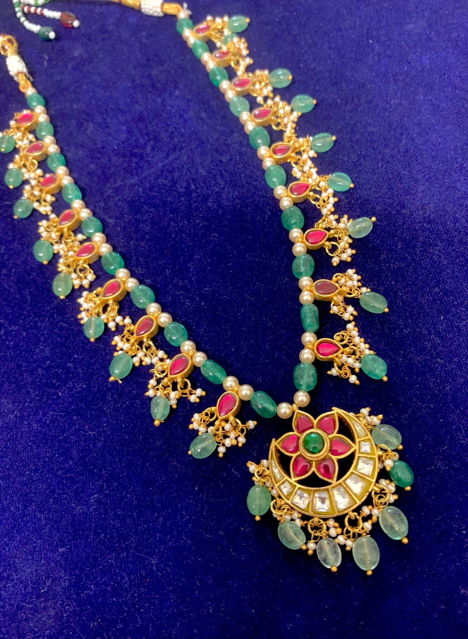 kundan polki necklace set Ruby stones with chandbali pendant design chocker