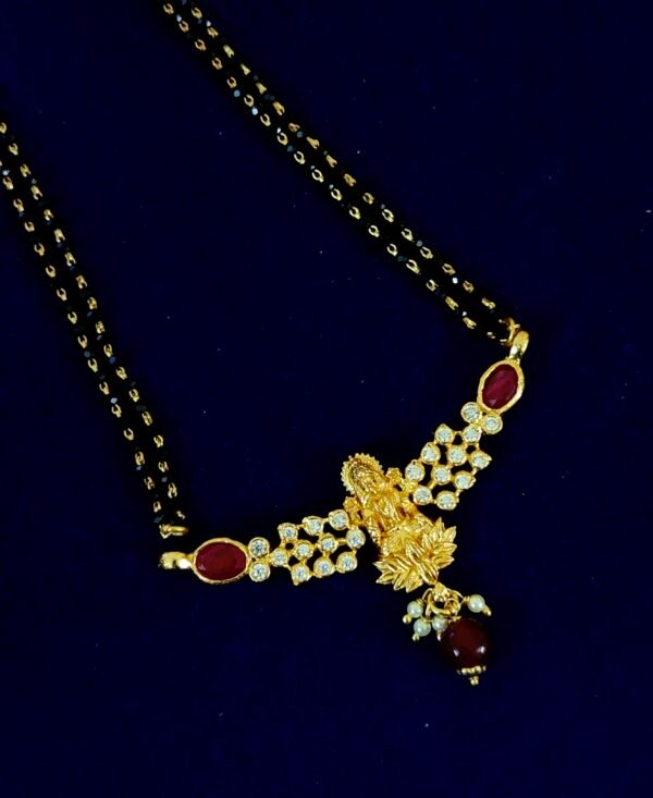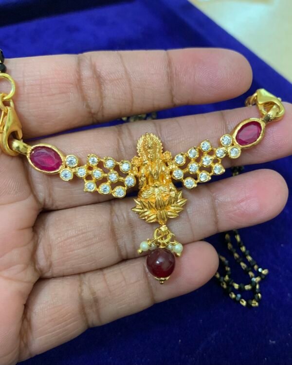 Item Description : 925 Gold plated silver black bead with lakshmi pendant