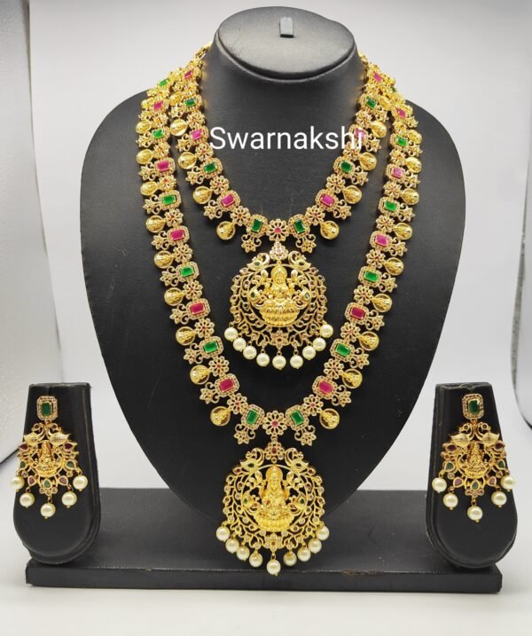 Lakshmi haram set with traditional pendant and earrings long necklace model