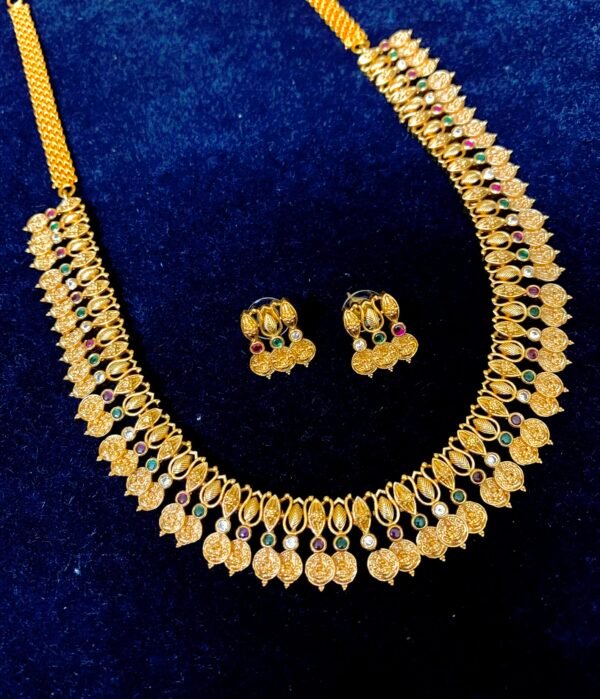 Be the first to review “Lakshmi kasu necklace designs with beautiful earrings / matte”