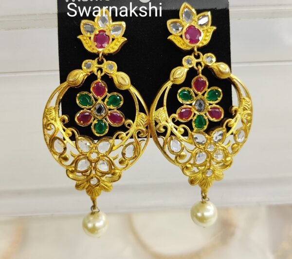 Be the first to review “Large Chandbali earrings models uncut stone design”