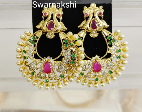 Be the first to review “Large Chandbali earrings with cz stone and pearl border”