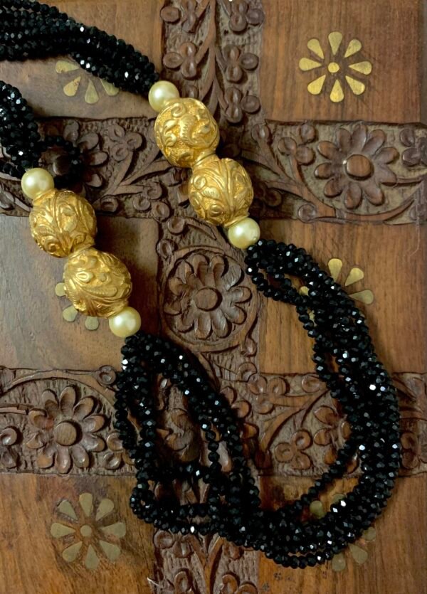 Item Description : Silver Ball chain necklace neck fir model with bunch of crystals attached each side of balls