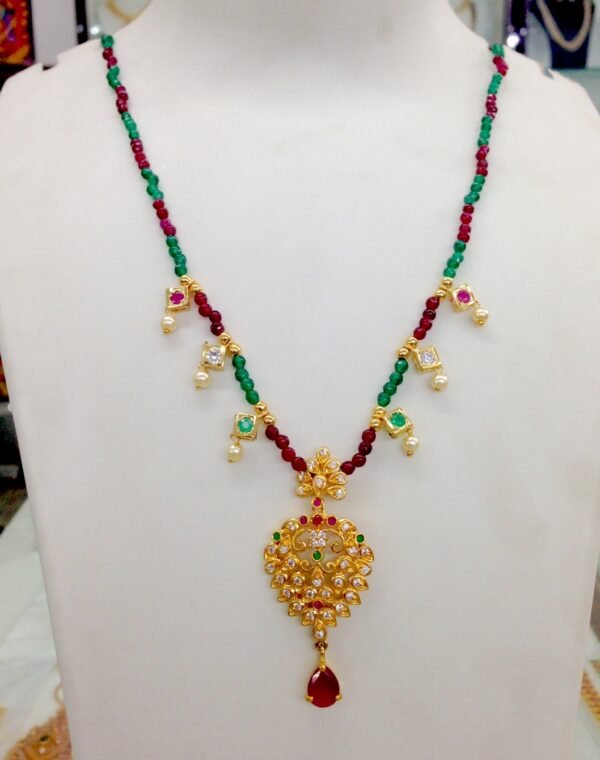 Be the first to review “Latest beads necklace designs multi colour with cz pendant model”