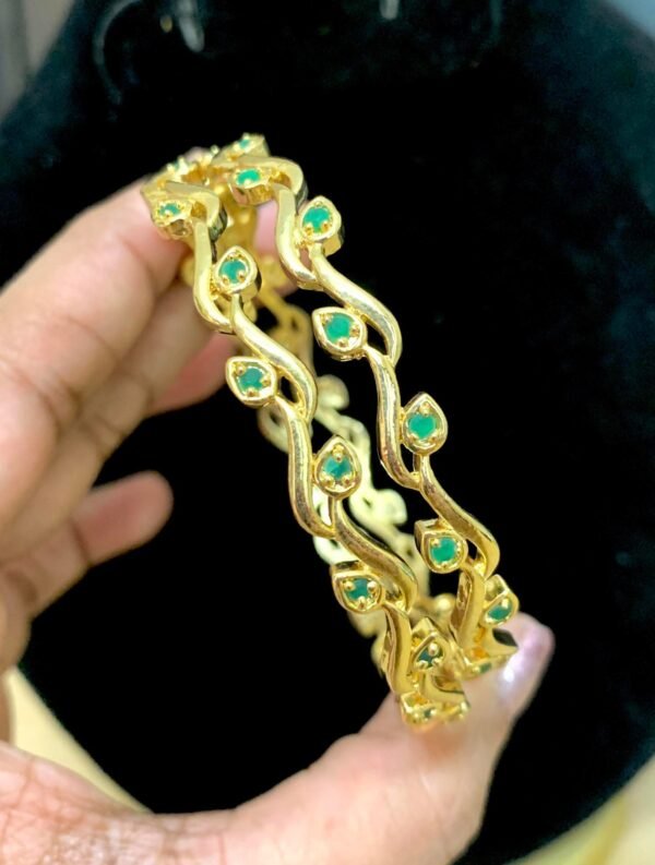 Be the first to review “Leaf design bangles 2.6 size with emerald stones”