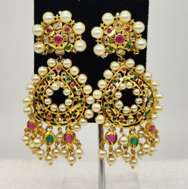 Long chandbali earrings with ruby emerals pearl border model 3 inch