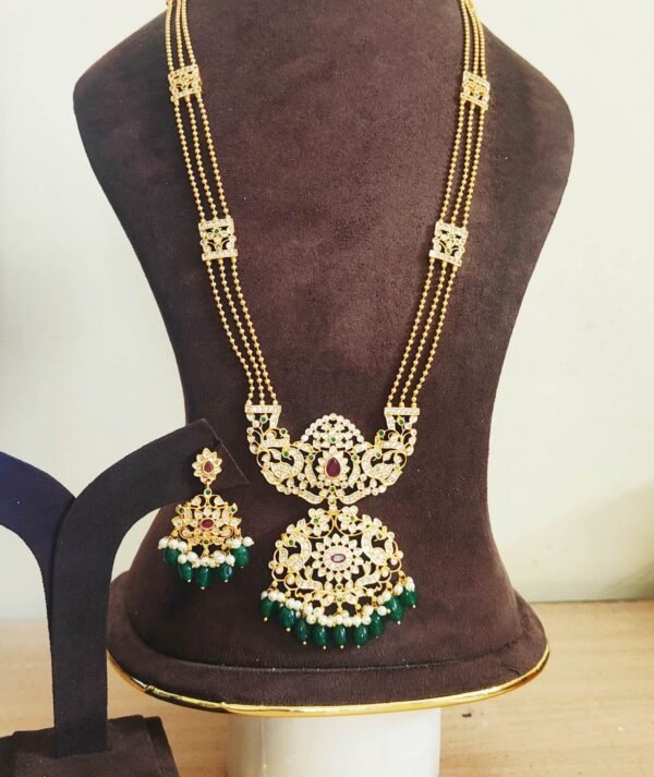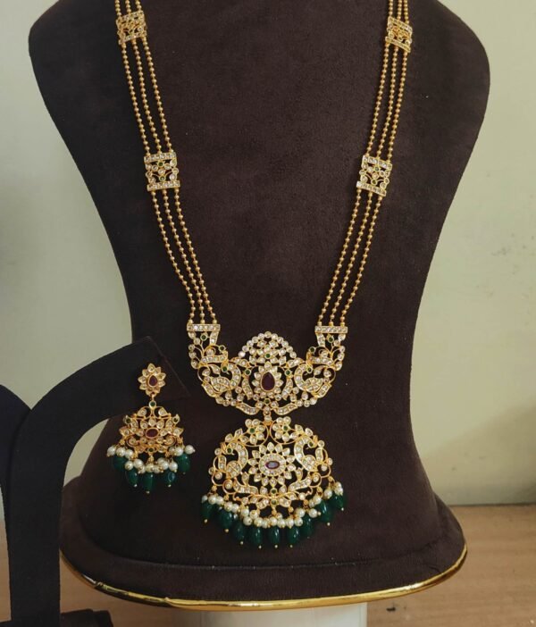 Lakshmi kasu design long haram with matching erarrings long necklace model