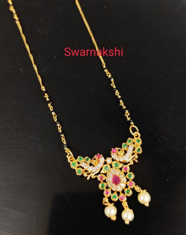 Nallapusalu double chain with peacock design pendant / black beads