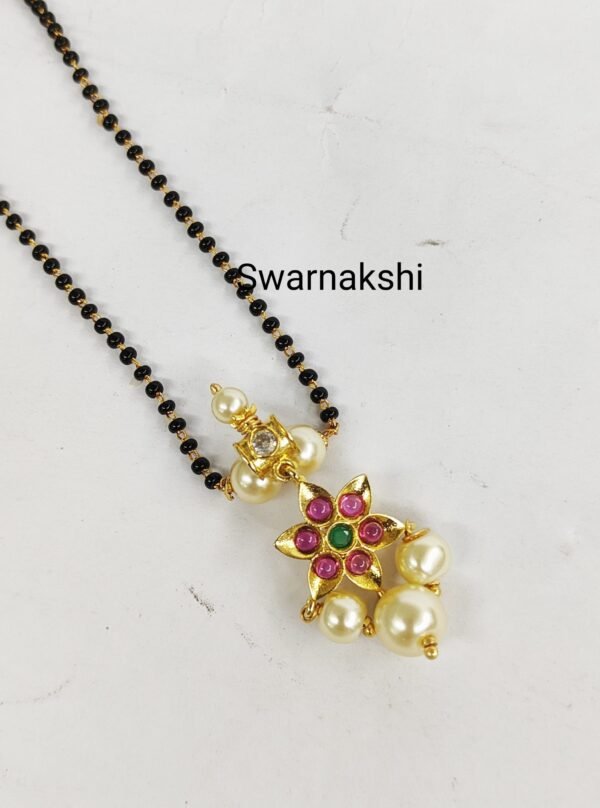 Be the first to review “Mangalsutra models with ruby stones floral design / black beads”