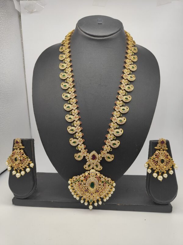 one gram gold long haram designs with cz ruby stone model long necklace