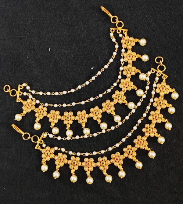Matt finish ear chain with price pearl drops design