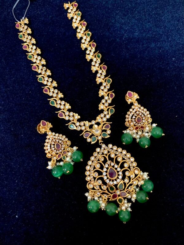 Matt finish jewellery set with cz stone and green beads