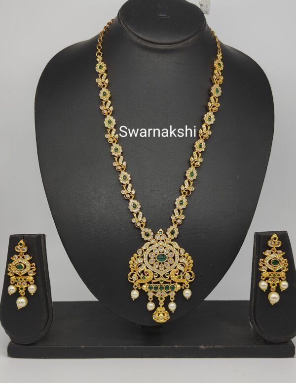Be the first to review “Matte finish haram set designs with floral model chain and earrings long necklace”
