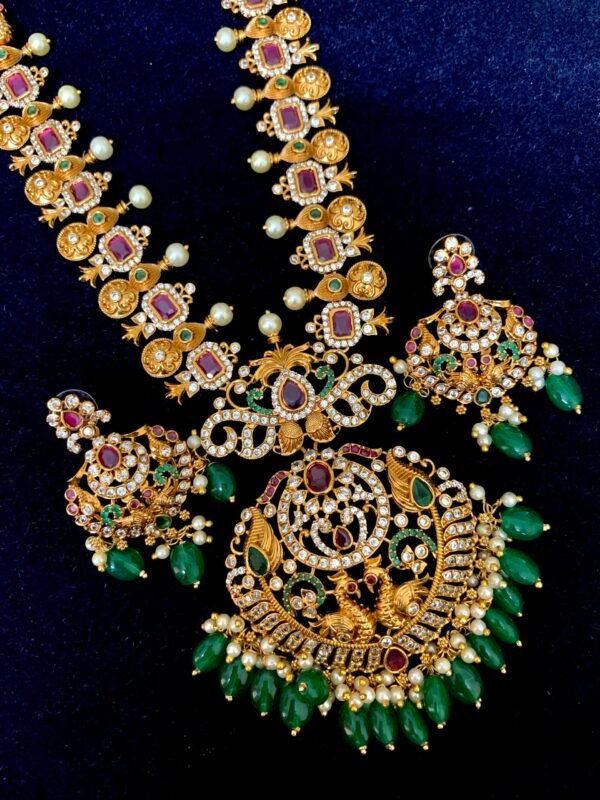 Item Description :Imitation Grand matte finish long haram online grand look big pendant with earrings