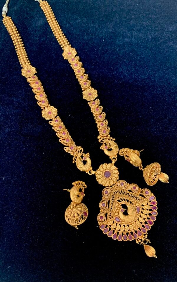 Be the first to review “Matte finish long haram online large pendant model with jhumkas”