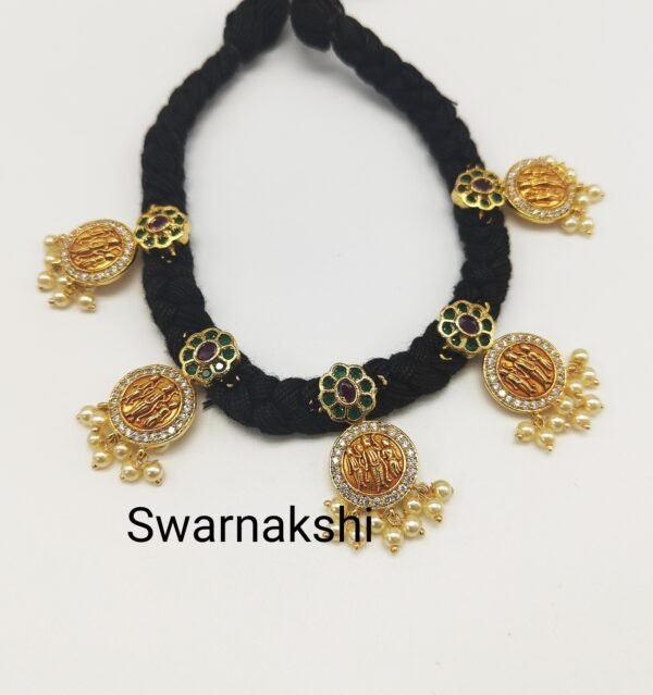 Matte finish ramparivar black thread necklace with pearls