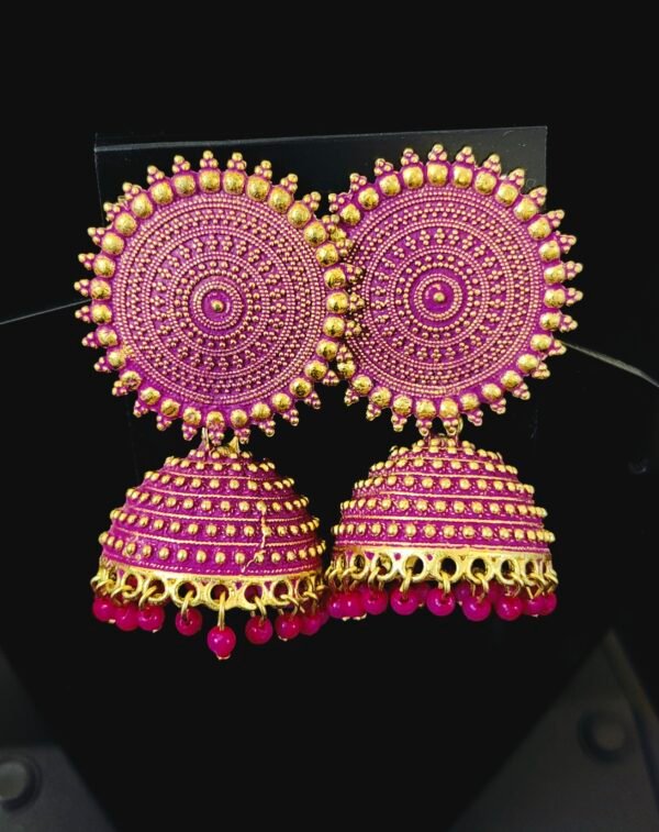 Meenakari earrings Ruby beads drop model big size jhumkas