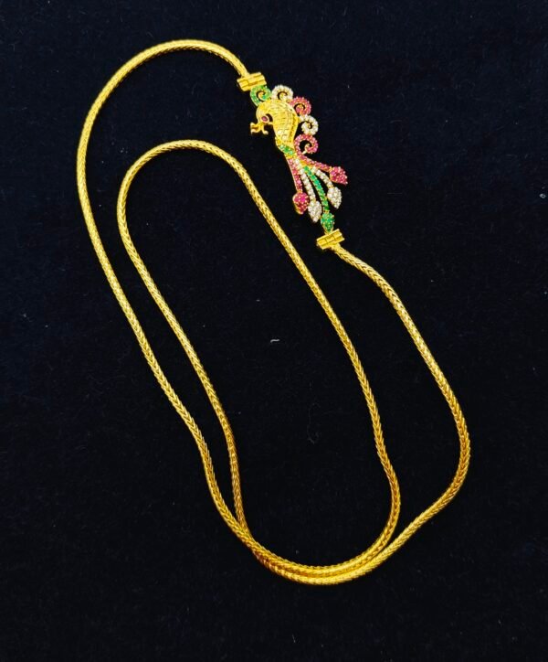 Be the first to review “Mugappu chain designs multi stones peacock design pendant”