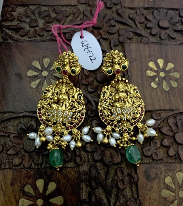 Be the first to review “Nakshi earrings 925 silver lakshmi model with rice pearls green drops”
