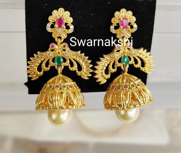 Be the first to review “Nakshi model jhumkas online with ruby and emerald stones”