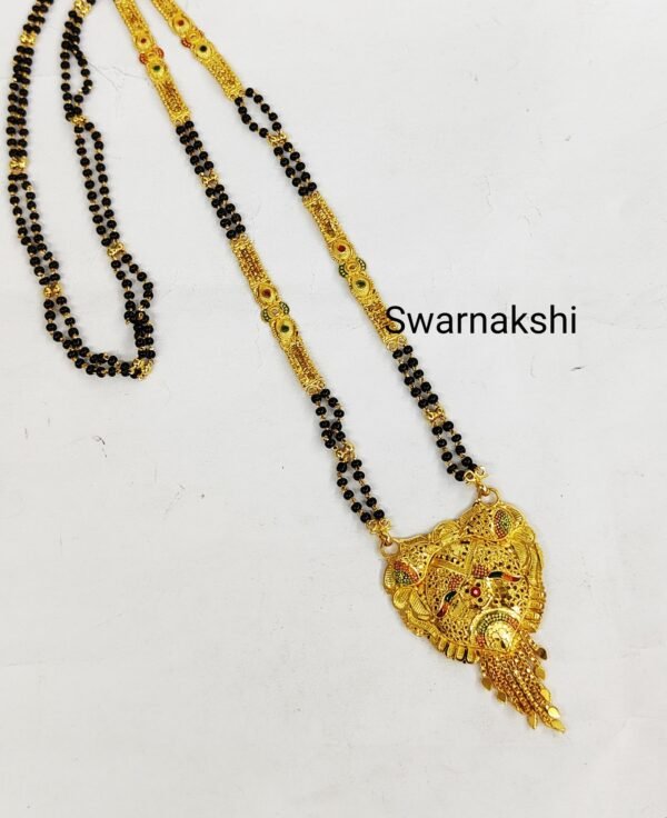Double layer mangalsutra design with lakshmi pendant / black beads