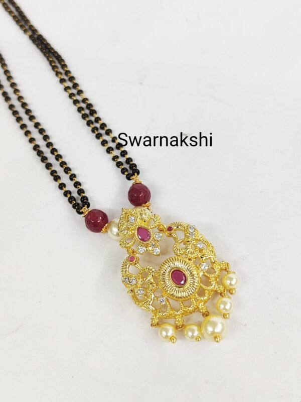 Be the first to review “Nallapusalu double chain with peacock design pendant / black beads”