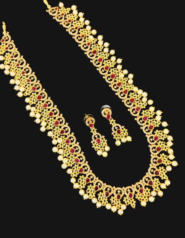 Be the first to review “One gram gold long haram designs with ruby emerald stones model”