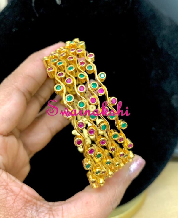 One gram gold 2.6 bangles price with round emerald stone & ruby stones design