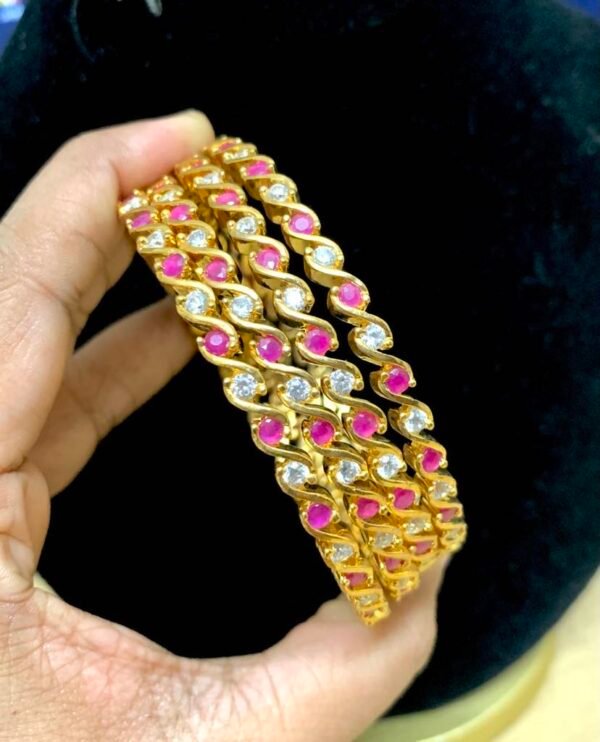 AD stone bangles 2.4 size pattern 4 piece set slim model
