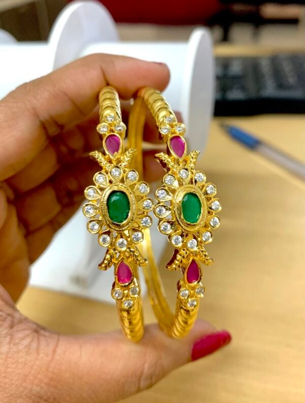 One gram gold 2.6 bangles price with round emerald stone & ruby stones design