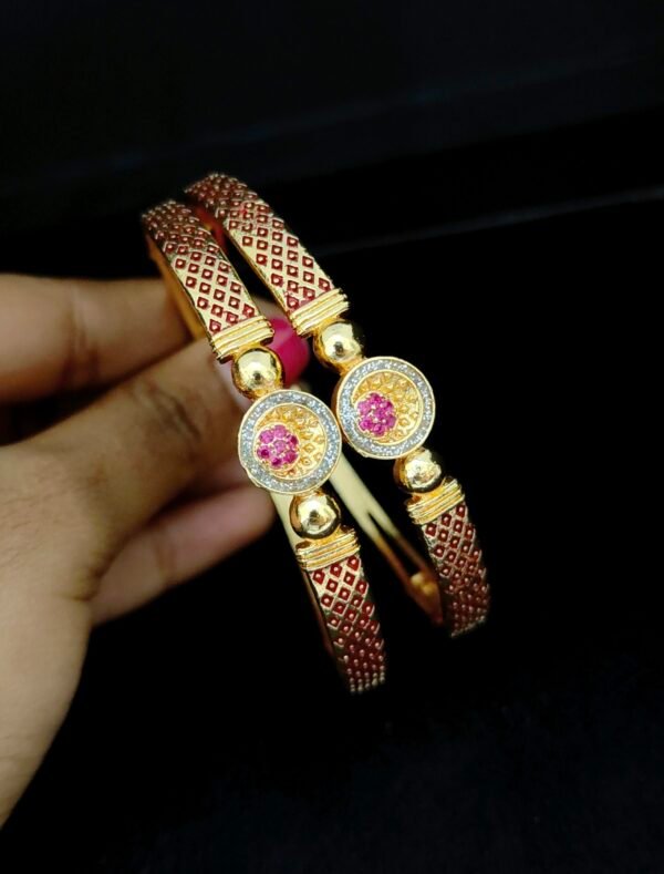 Item Description : One gram gold bangles enamel design with simple ruby stone model