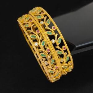 1 gram gold bangles 2.10 size with emerald stones and leaf design