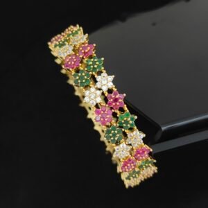 CZ bangles designs 2.10 size with emerald and ruby stones floral model