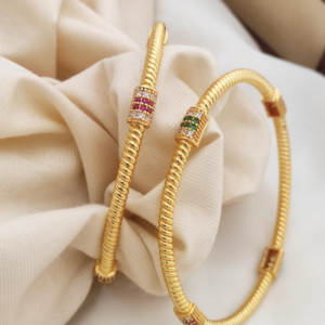 Item Description : One gram gold bangles enamel design with simple ruby stone model