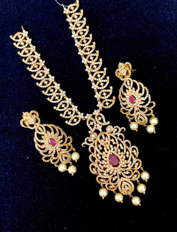 Item Description :Imitation Grand Cz short necklace trending with ruby and cz stone model