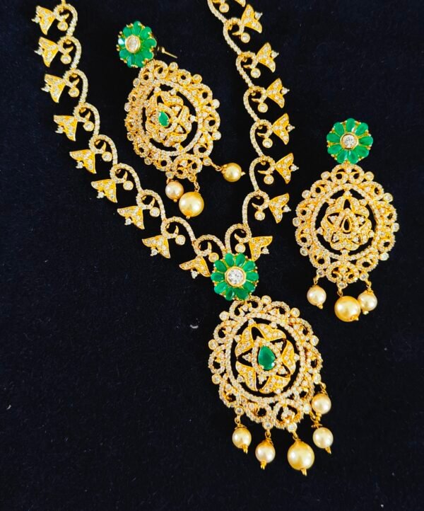 Be the first to review “One gram gold Cz short necklace trending model”