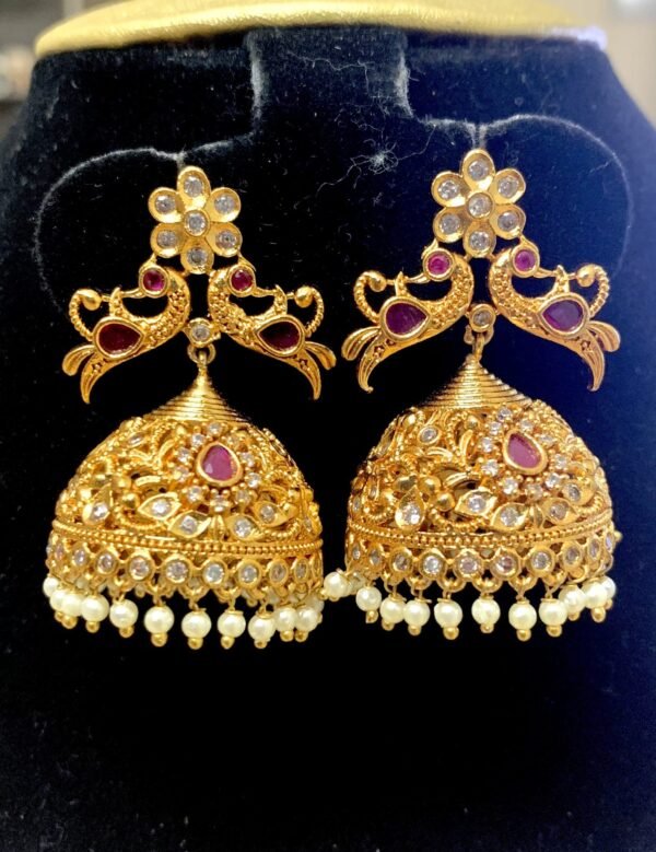 CZ Stone jhumkas peacock design top model
