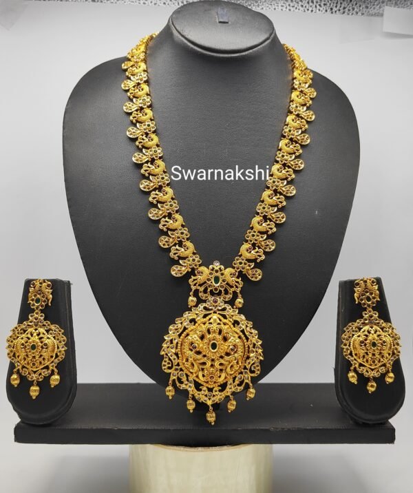 Be the first to review “One gram gold haram models with peacock design chain”