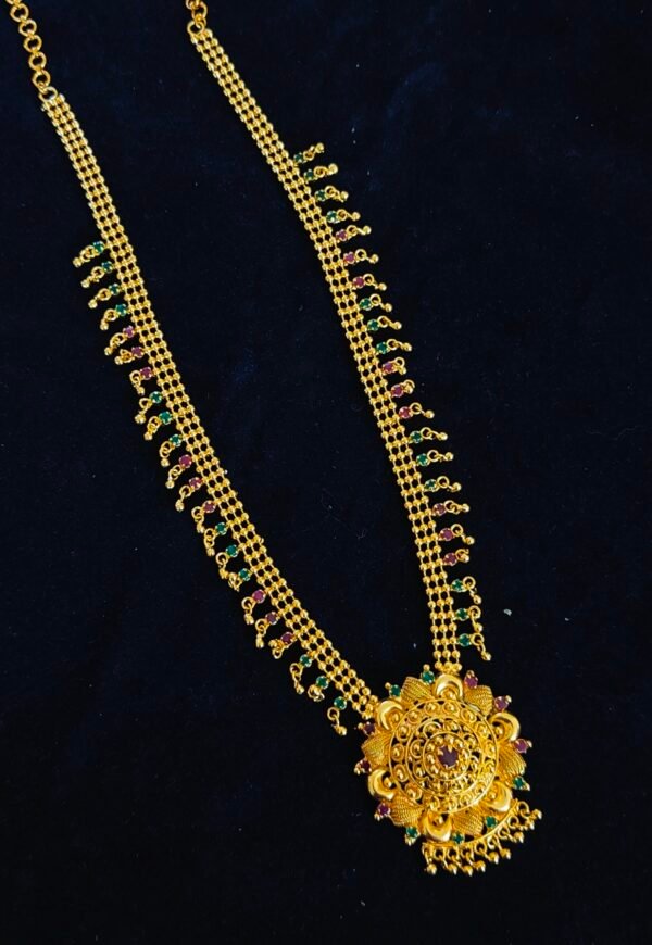 Be the first to review “One gram gold haram with ruby and emerald stones with pendant long necklace”