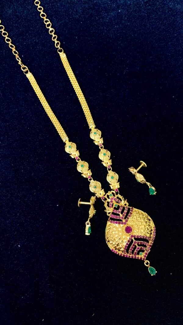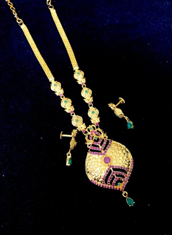 one gram gold jewellery set multi colors stones medium length chain