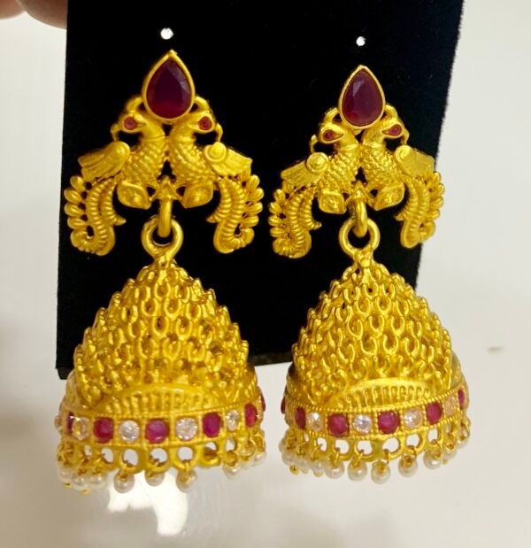 one gram gold jhumka design ruby stone with peacock design